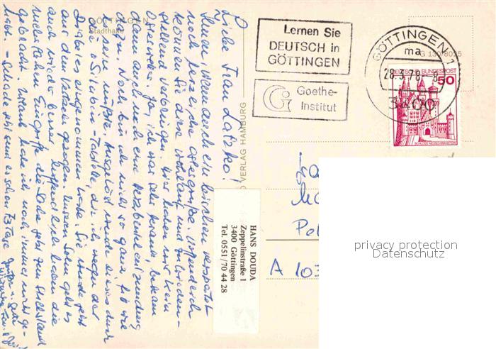 72838424 alte Postkarte Goettingen Niedersachsen Stadthalle postalisch gelaufen Erhaltung siehe scans [WerneD78] KatCode: 11110003152012