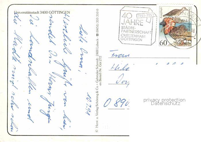 72847761 alte Postkarte Goettingen Niedersachsen Teilansicht Aula Junkernschaenke Rathaus Muehle Gaenselieselbrunnen Deutsches Theater Stadthalle postalisch gelaufen Erhaltung siehe scans [FriedD77] KatCode: 11110003152012