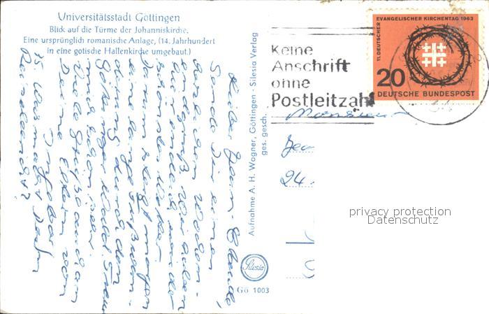 72187744 alte Postkarte Goettingen Niedersachsen Tuerme der Johanniskirche postalisch gelaufen Erhaltung siehe scans KatCode: 11110003152012