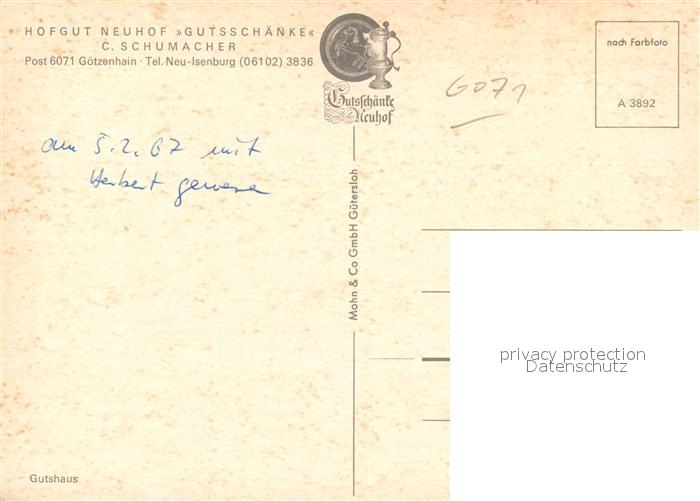 73596224 Goetzenhain Hofgut Neuhof Gutsschaenke postalisch nicht gelaufen Erhaltung siehe scans [FriedD77] KatCode: 11110006438002