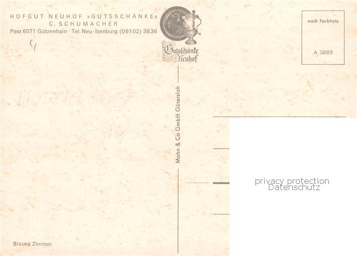 73862981 Goetzenhain Hofgut Neuhof Gutsschaenke Gaststube postalisch nicht gelaufen Erhaltung siehe scans [WerneD78] KatCode: 11110006438002