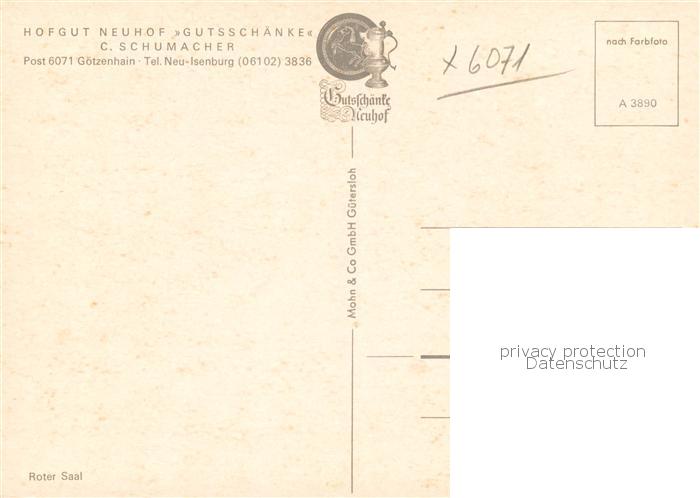 73844763 Goetzenhain Hofgut Neuhof Gutsschaenke Schumacher postalisch nicht gelaufen Erhaltung siehe scans [WerneD78] KatCode: 11110006438002