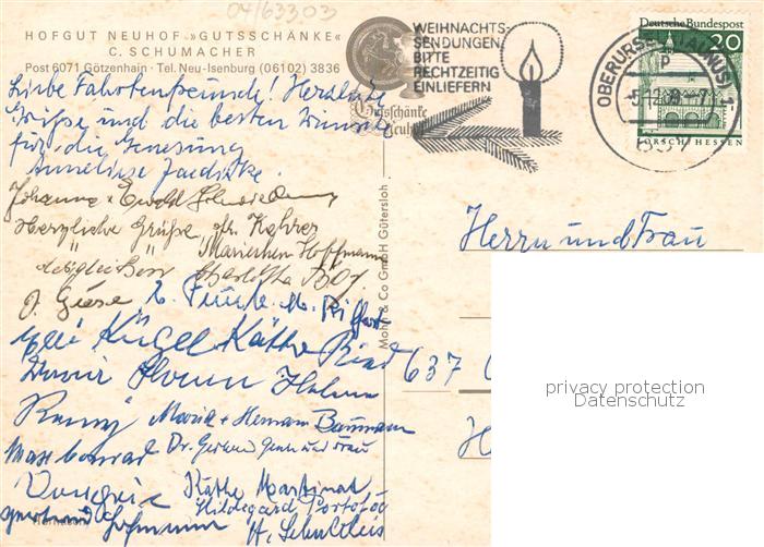 73862930 alte Postkarte Goetzenhain Hofgut Neuhof Gutsschaenke Schumacher postalisch gelaufen Erhaltung siehe scans [WerneD78] KatCode: 11110006438002