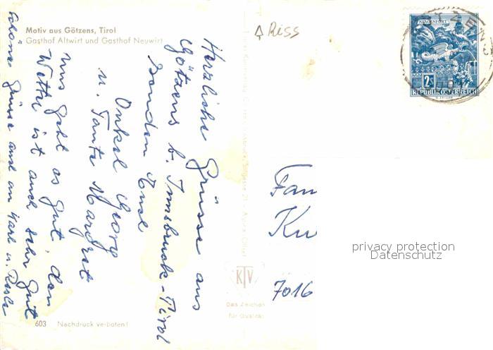 72870272 alte Postkarte Goetzens Tirol Gasthof Altwirt Neuwirt postalisch gelaufen Erhaltung siehe scans [NatalD47] KatCode: 11390332070312