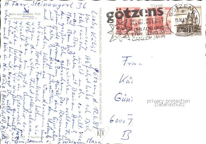 72482616 alte Postkarte Goetzens Tirol mit Kirche und Nockspitze postalisch gelaufen Erhaltung siehe scans KatCode: 11390332070312