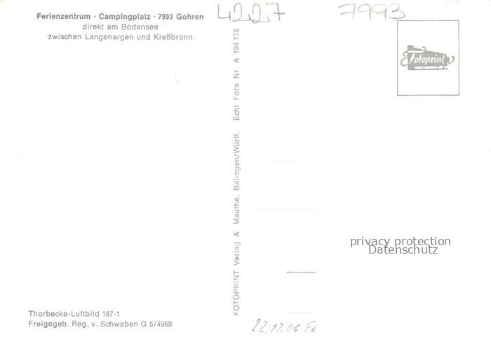 34144487 Gohren (Camping) Kressbronn Langenargen Bodensee BW Ferienzentrum Campingplatz am Bodensee Fliegeraufnahme postalisch nicht gelaufen Erhaltung siehe scans [WerneD78] KatCode: 11110008435029