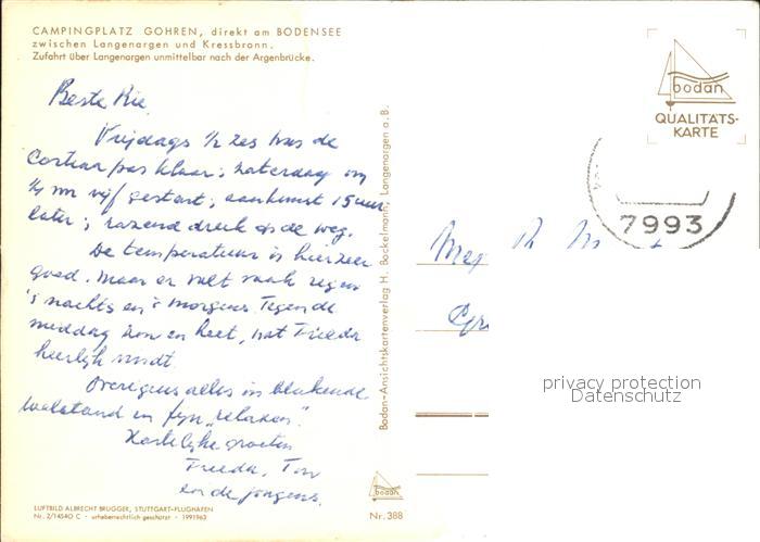72287828 alte Postkarte Gohren Fliegeraufnahme Camping Bodensee postalisch gelaufen Erhaltung siehe scans KatCode: 11110008435029