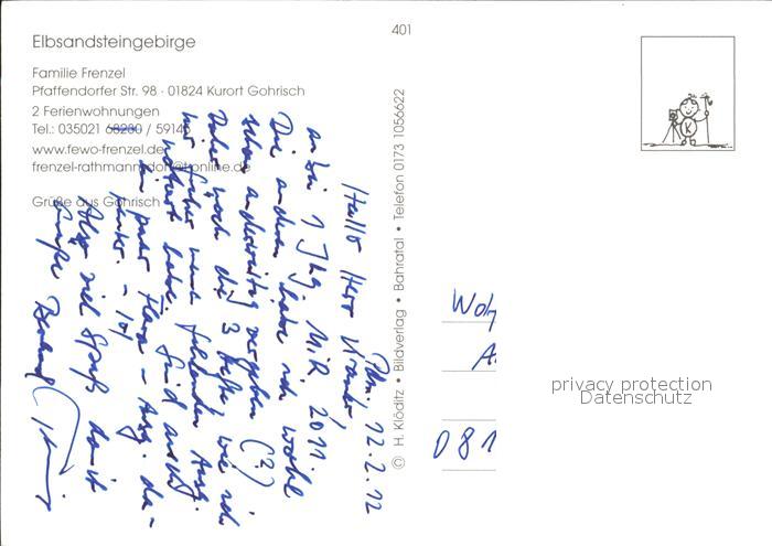 72376178 Gohrisch Elbsandsteingebirge Ferienwohnungen Frenzel Barbarine postalisch nicht gelaufen Erhaltung siehe scans KatCode: 11110014287120