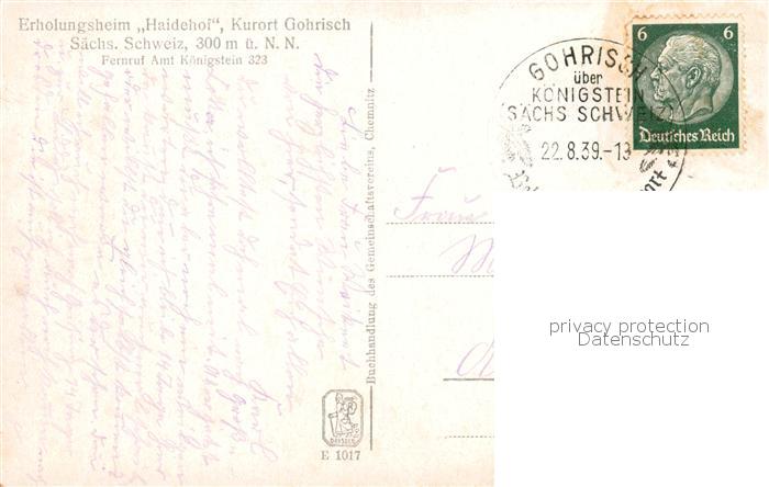 73820739 alte Postkarte Gohrisch Erholungsheim Haidehof postalisch gelaufen Erhaltung siehe scans [FriedD77] KatCode: 11110014287120