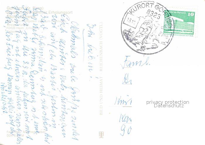 72617150 alte Postkarte Gohrisch Koenigstein Lilienstein Kneipp Kurbad FDGB Erholungsheim Teilansicht postalisch gelaufen Erhaltung siehe scans [WerneD78] KatCode: 11110014287120