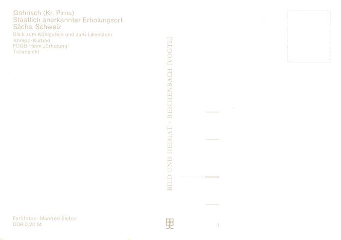 73876283 Gohrisch Koenigstein und Lilienstein Kneipp Kurbad FDGB Heim Erholung Teilansicht postalisch nicht gelaufen Erhaltung siehe scans [WerneD78] KatCode: 11110014287120