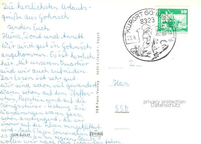 73081150 alte Postkarte Gohrisch Panorama mit Lilienstein Elbsandsteingebirge FDGB Erholungsheim Barbarine Felsformation postalisch gelaufen Erhaltung siehe scans [FriedD77] KatCode: 11110014287120