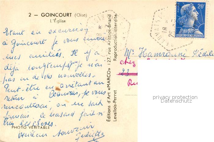 13589594 Goincourt Eglise postalisch gelaufen Erhaltung siehe scans [WerneD78] carte postale Wern Katcode 11170060160277