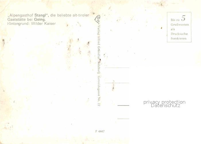 72654816 Going Wilden Kaiser Tirol Alpengasthof Stangl postalisch nicht gelaufen Erhaltung siehe scans [AndreD76] KatCode: 11390335070404