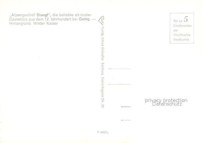 13186810 Going Wilden Kaiser Tirol Alpengasthof Stangl postalisch nicht gelaufen Erhaltung siehe scans [NatalD47] KatCode: 11390335070404