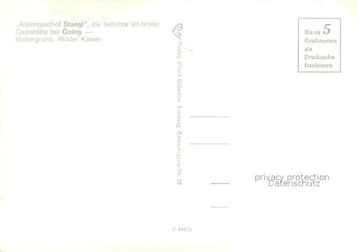 73655254 Going Wilden Kaiser Tirol Alpengasthof Stangl Blick zum Wilden Kaiser Kaisergebirge postalisch nicht gelaufen Erhaltung siehe scans [FriedD77] KatCode: 11390335070404