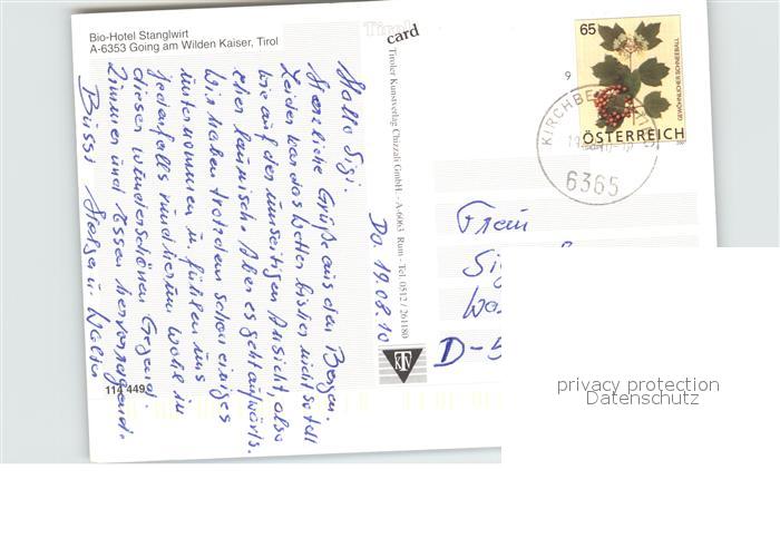 72510747 alte Postkarte Going Wilden Kaiser Tirol Bio Hotel Stanglwirt postalisch gelaufen Erhaltung siehe scans KatCode: 11390335070404