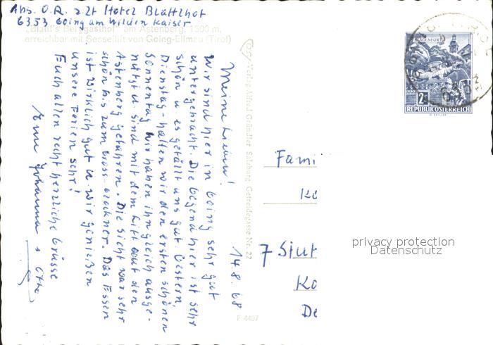 72308816 alte Postkarte Going Wilden Kaiser Tirol Blattls Berggasthof am Astenberg mit Loferer und Leoganger Steinberge Kitzbueheler Horn postalisch gelaufen Erhaltung siehe scans KatCode: 11390335070404