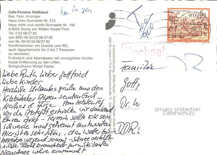 71928612 alte Postkarte Going Wilden Kaiser Tirol Cafe Pension Retthaeus postalisch gelaufen Erhaltung siehe scans KatCode: 11390335070404