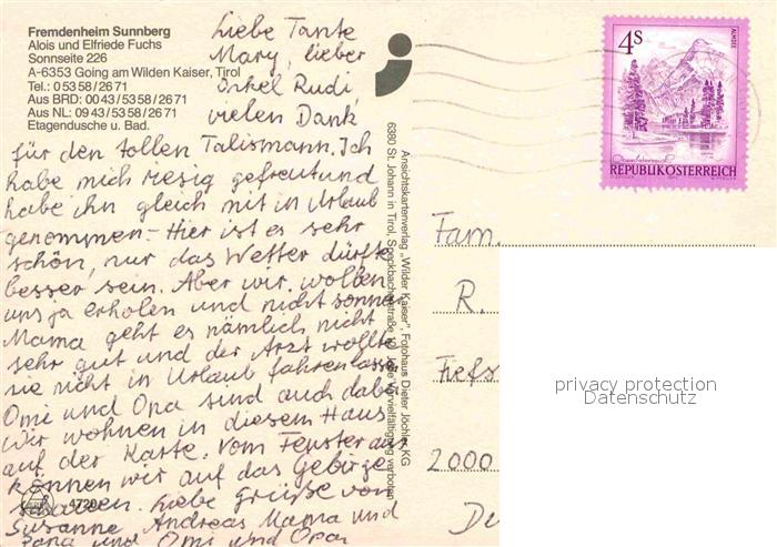 72673451 alte Postkarte Going Wilden Kaiser Tirol Fremdenheim Sunnberg postalisch gelaufen Erhaltung siehe scans [FriedD77] KatCode: 11390335070404