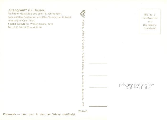 73338912 Going Wilden Kaiser Tirol Gasthaus Stanglwirt am Wilden Kaiser postalisch nicht gelaufen Erhaltung siehe scans [LiesaD40] KatCode: 11390335070404