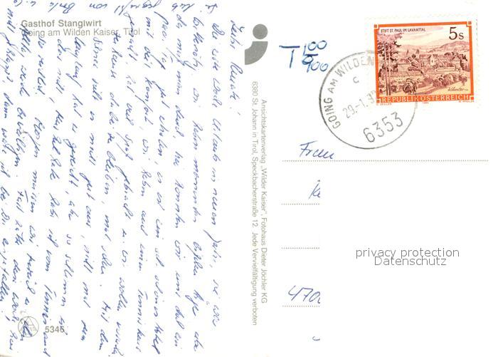 73034378 alte Postkarte Going Wilden Kaiser Tirol Gasthof Stanglwirt postalisch gelaufen Erhaltung siehe scans [PaolaD17] KatCode: 11390335070404