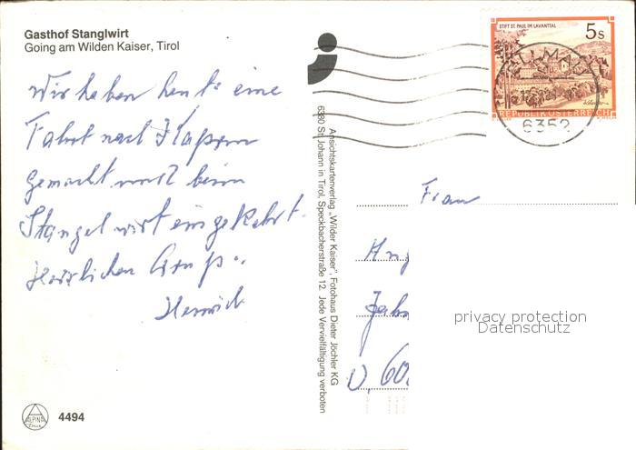 72032880 alte Postkarte Going Wilden Kaiser Tirol Gasthof Stanglwirt Blumen postalisch gelaufen Erhaltung siehe scans KatCode: 11390335070404