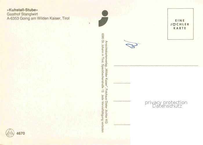 72862301 Going Wilden Kaiser Tirol Kuhstall Stube Gasthof Stanglwirt Kaisergebirge postalisch nicht gelaufen Erhaltung siehe scans [FriedD77] KatCode: 11390335070404