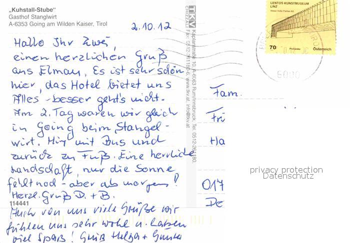 72818295 alte Postkarte Going Wilden Kaiser Tirol Kuhstall Stube Stanglwirt postalisch gelaufen Erhaltung siehe scans [LiesaD40] KatCode: 11390335070404