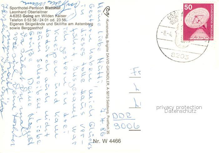 73237720 alte Postkarte Going Wilden Kaiser Tirol Sporthotel Pension Blattlhof postalisch gelaufen Erhaltung siehe scans [WerneD78] KatCode: 11390335070404