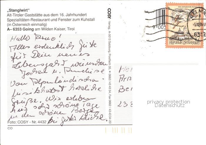 72539208 alte Postkarte Going Wilden Kaiser Tirol Stangelwirt postalisch gelaufen Erhaltung siehe scans [AndreD76 kt119box] KatCode: 11390335070404