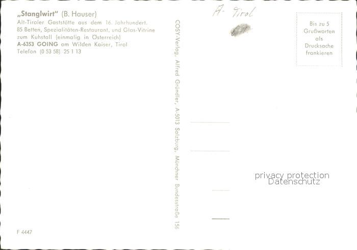 71812466 Going Wilden Kaiser Tirol Stanglwirt Details Alpenpanorama postalisch nicht gelaufen Erhaltung siehe scans KatCode: 11390335070404