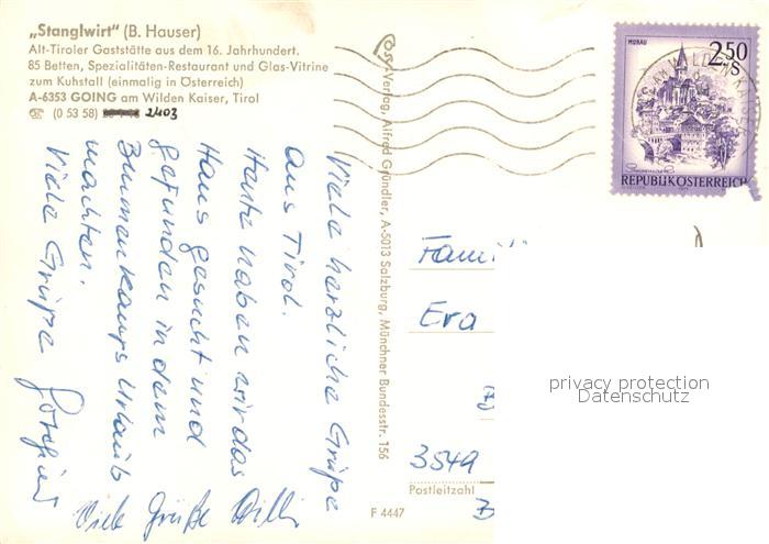 73515012 alte Postkarte Going Wilden Kaiser Tirol Stanglwirt Gastraum Panorama postalisch gelaufen Erhaltung siehe scans [WerneD78] KatCode: 11390335070404