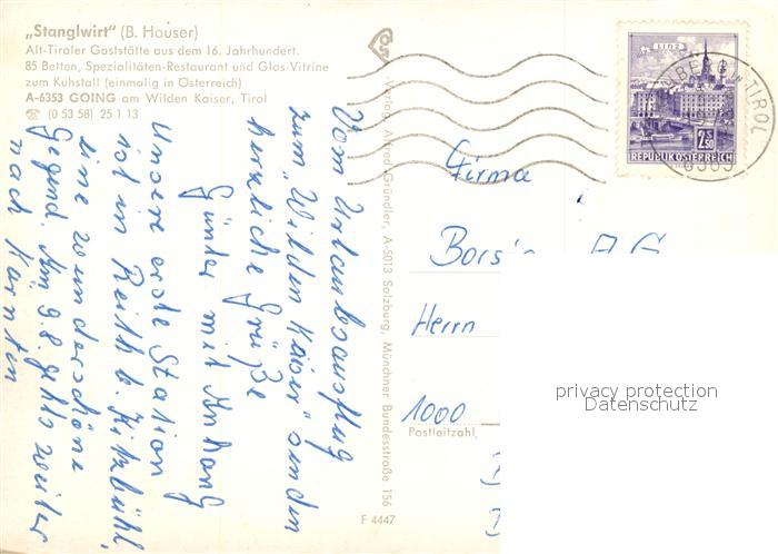 73185217 alte Postkarte Going Wilden Kaiser Tirol Stanglwirt Kuehe postalisch gelaufen Erhaltung siehe scans [LiesaD40] KatCode: 11390335070404