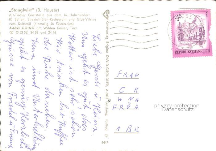71969349 alte Postkarte Going Wilden Kaiser Tirol Stanglwirt Restaurant Hotel postalisch gelaufen Erhaltung siehe scans KatCode: 11390335070404