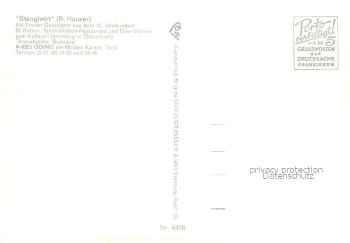 73160956 Going Wilden Kaiser Tirol Stanglwirt Tiroler Gaststaette postalisch nicht gelaufen Erhaltung siehe scans [WerneD78] KatCode: 11390335070404