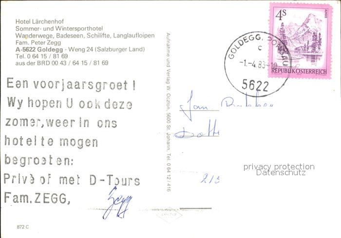 72230362 alte Postkarte Goldegg Hotel Laerchenhof postalisch gelaufen Erhaltung siehe scans KatCode: 11390322050410