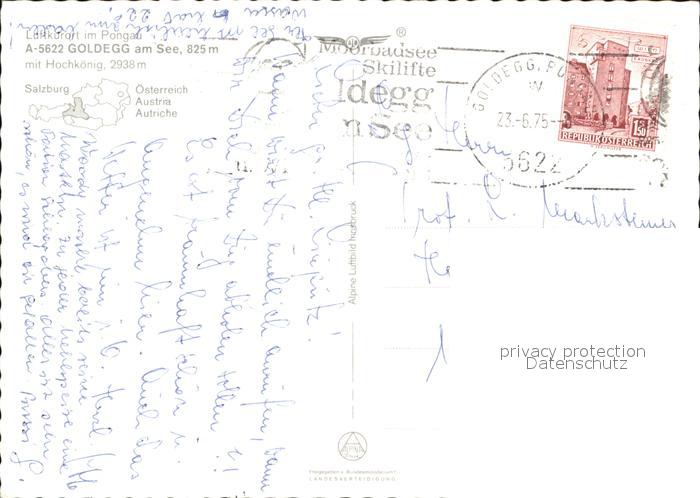 72478340 alte Postkarte Goldegg Panorama mit Hochkoenig Fliegeraufnahme postalisch gelaufen Erhaltung siehe scans KatCode: 11390322050410