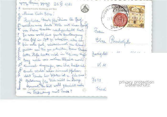 72581042 alte Postkarte Goldegg Sommerfrische Uferpartie am See postalisch gelaufen Erhaltung siehe scans [FriedD77] KatCode: 11390322050410