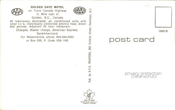 Golden British Columbia Golden Gate Motel postalisch nicht gelaufen Erhaltung siehe scans