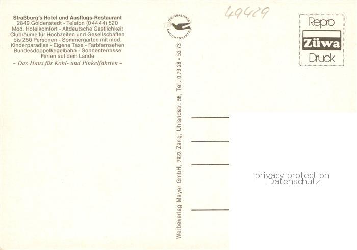 73863523 Goldenstedt Strassburg’s Hotel Ausflugs Restaurant Gaststube postalisch nicht gelaufen Erhaltung siehe scans [WerneD78] KatCode: 11110003460004