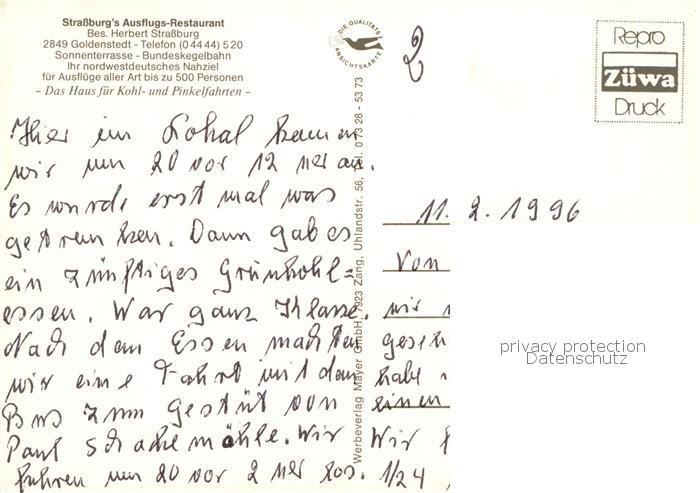 73846006 Goldenstedt Strassburgs Hotel und Ausflugs Restaurant Garten Spielplatz Kegelbahn Park postalisch nicht gelaufen Erhaltung siehe scans [FriedD77] KatCode: 11110003460004