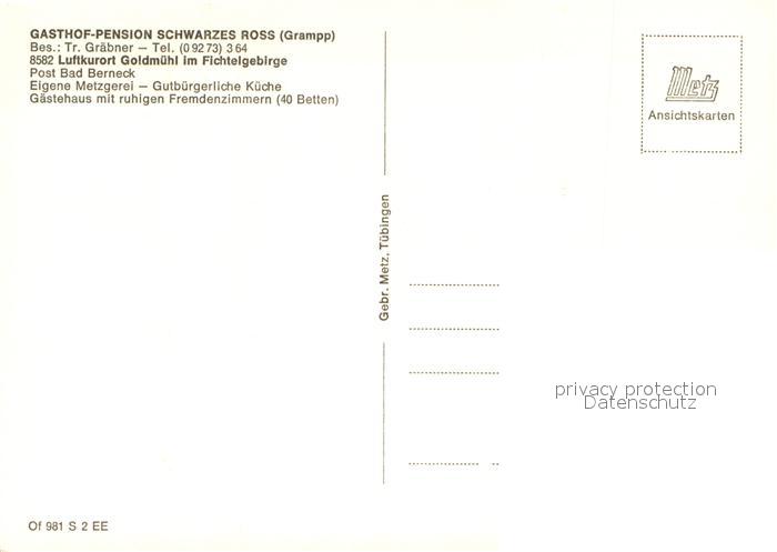 73717401 Goldmuehl Fichtelgebirge Gasthof Pension Schwarzes Ross Gastraeume Terrasse Panorama postalisch nicht gelaufen Erhaltung siehe scans [WerneD78] KatCode: 11110009472116