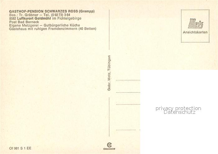 73646379 Goldmuehl Fichtelgebirge Gasthof Pension Schwarzes Ross postalisch nicht gelaufen Erhaltung siehe scans [WerneD78] KatCode: 11110009472116
