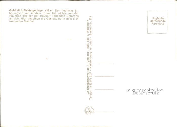 72401319 Goldmuehl Fichtelgebirge Oberlauf Weisser Main Mainquelle Maintal postalisch nicht gelaufen Erhaltung siehe scans KatCode: 11110009472116