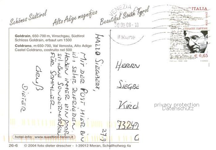 old postcard Goldrain Vinschgau Schloss Goldrain Details postalisch gelaufen Erhaltung siehe scans [WerneD78]