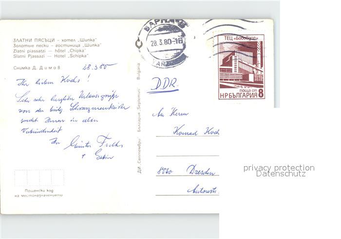 old postcard Goldstrand Hotel Schipka postalisch gelaufen Erhaltung siehe scans