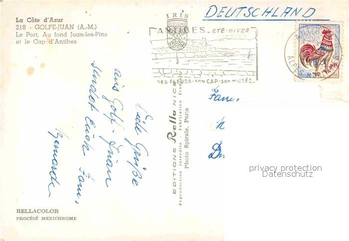 12755451 carte postale Golfe-Juan Vallauris 06 Alpes-Maritimes Le Port Au fond Juan les Pins et le Cap d Antibes postalisch gelaufen Erhaltung siehe scans [WerneD78] KatCode: 11170006106155