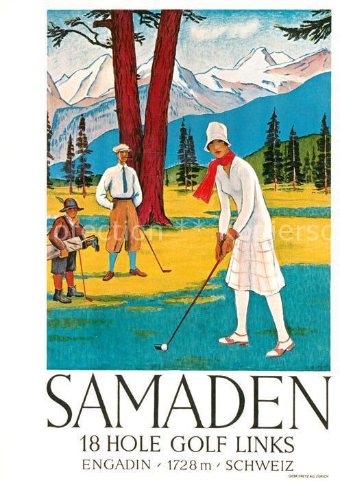 Golfsport Samaden Engadin Plakat Verkehrsverein 1925 postalisch nicht gelaufen Reprokarte (modern) Erhaltung siehe scans [PaolaD17]