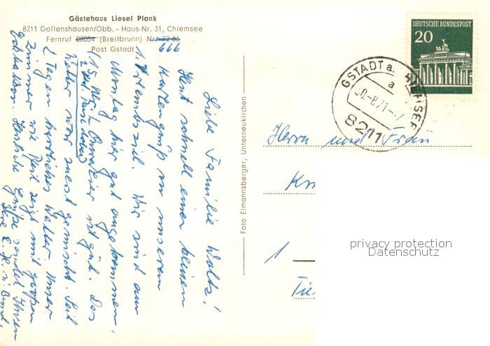 73730769 alte Postkarte Gollenshausen Chiemsee Gaestehaus Haus am See Terrasse Seeblick postalisch gelaufen Erhaltung siehe scans [FriedD77] KatCode: 11110009187138